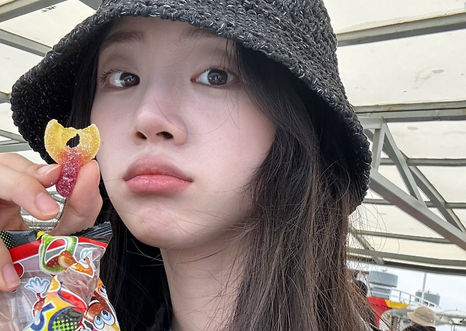 버킷햇을 눌러쓴 채 과자를 들고 장난스러운 표정을 짓는 모습, 햇살 아래에서 카메라를 향해 미소를 머금은 모습은 친근하면서도 신시아만의 분위기를 담아냈다.
