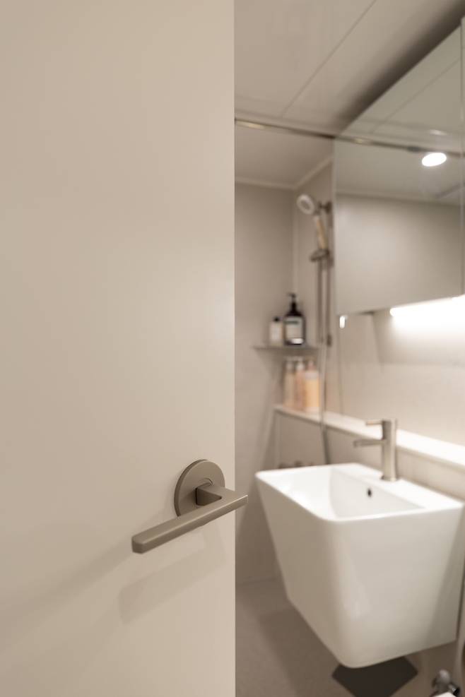 사용을 해보니 마감이 깔끔하여 타일처럼 줄눈을 하지 않아도 되고, 벽과 바닥을 투톤으로 하여 제가 원하던 호텔식 느낌의 욕실을 구현해주셨습니다.