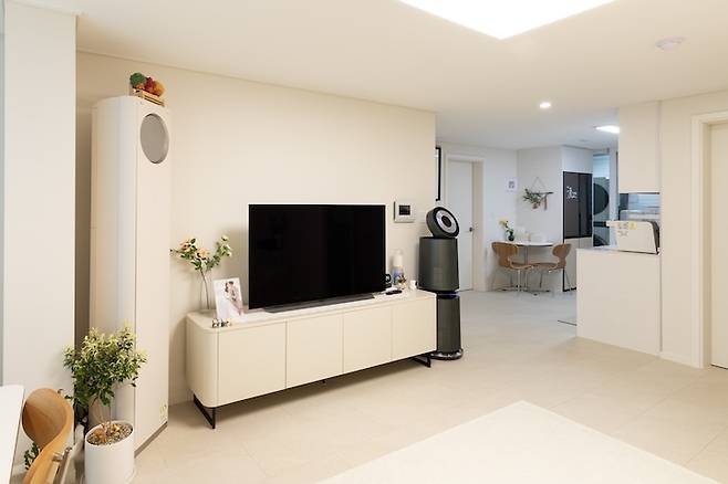 에어컨과 공기청정기는 어쩔 수 없이 티비 옆으로 배치되었어요.