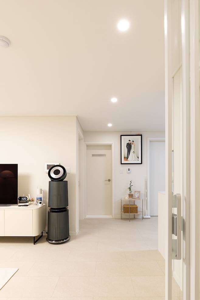 현관에서 처음으로 보이는 저희 집 내부입니다. 벽에는 결혼 1주년 리마인드로 찍은 액자가 걸려있습니다.