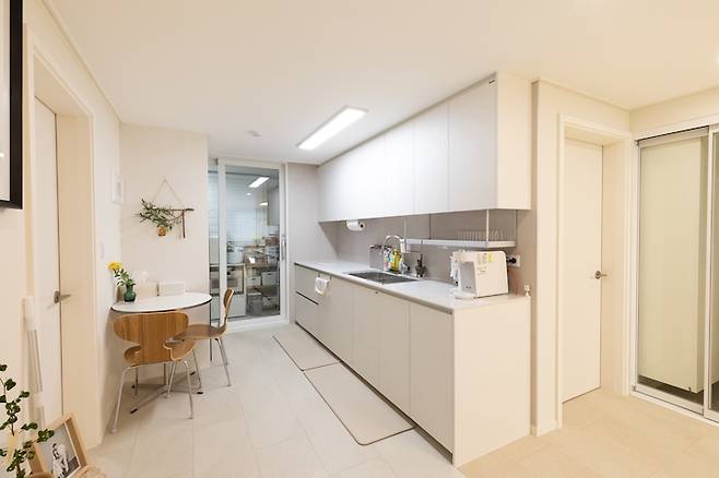 다음은, 주방입니다. 작은 집일수록 수납과 정리가 필수라고 생각합니다. 공간의 한계가 있기 때문에 정리가 되어 있지 않으면 오히려 집이 더 좁아 보이는 것 같아요.