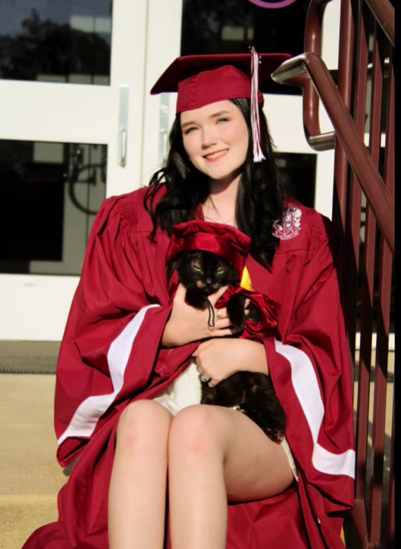 졸업을 앞두고 딸은 학사모와 가운을 입고 기념사진을 찍었다. 당연히 먀우먀우도 같은 복장을 갖췄다. 고양이도 ‘함께 졸업’ 해야 했기 때문이다.