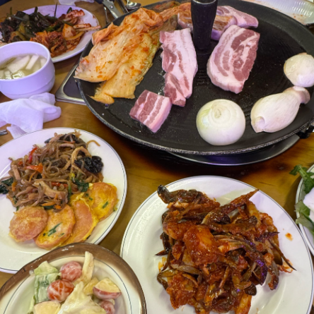 삼겹살 주문했는데 반찬과 채소가 30가지 이상 무한리필, 가격·맛·친절 모두 만족도가 높은 현지인 추천 가성비 고기집입니다.