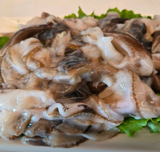 겨울부터 초봄까지가 제철로, 가장 인기 높은 메뉴입니다.다시마 육수에 살짝 데쳐 먹으면 부드럽고 달큰한 맛이 특징입니다.