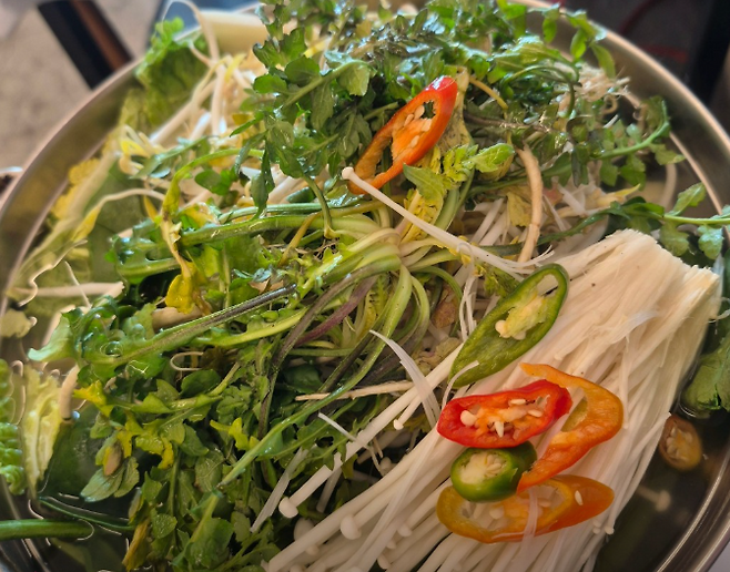 샤브샤브 육수에 넣어 먹는 마무리 메뉴로 만족도가 높습니다.
