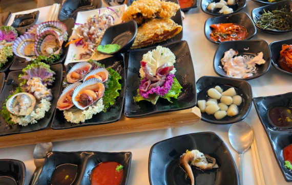 전복, 해삼, 멍게, 가리비 등 다양한 해산물을 한 번에 즐길 수 있습니다.