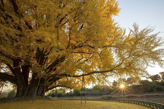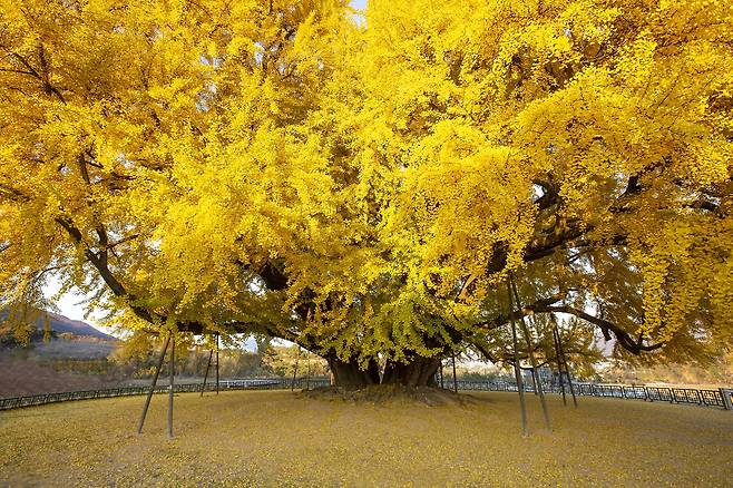 가을이면 반계리 은행나무는 마치 황금 보석을 주렁주렁 달아놓은 듯 오색찬란한 자태를 보여요. 은행나무의 잎사귀가 빚어내는 노란빛은 수확의 기쁨을 상징하는 색이기도 한데, 이 나무가 꾸는 단풍 꿈은 천 년 넘게 변함없이 이어져 왔으니 참 경이롭지 않나요. 가지 끝마다 매달린 노란 잎사귀를 가까이에서 바라보면, 그 안에 깃든 세월의 무게와 자연의 신비로움을 더 깊이 느끼게 될 거예요.