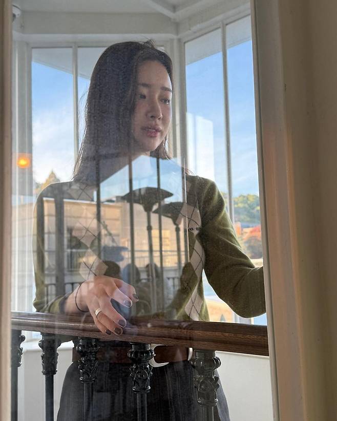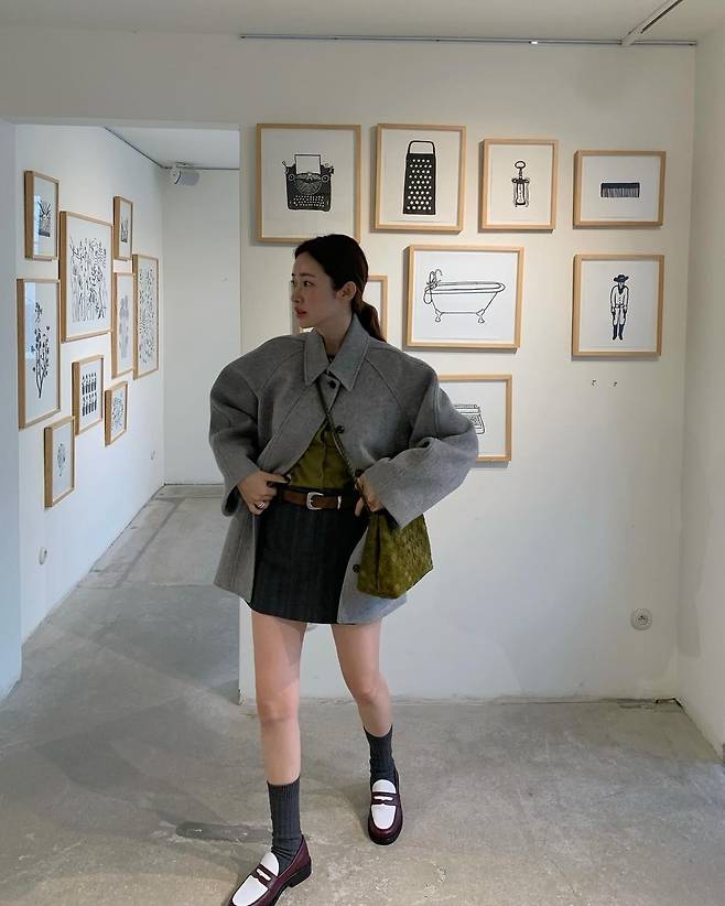공개 된 사진 속 차정원은 그린 컬러의 아가일 가디건을 입고 그레이 스트라이프 미니 스커트를 입어 날씬한 기럭지를 자랑했다. 그레이 컬러의 아방한 느낌의 숏 코트를 걸쳐서 러블리한 스타일링을 선보였다. 그레이 컬러의 롱삭스와 브라운과 화이트가 믹스된 로퍼를 신어 깔끔하고 단정한 데일리 코디를 자랑했다. 또한 브라운 숄더백을 매치하여 귀여운 분위기를 연출했다.