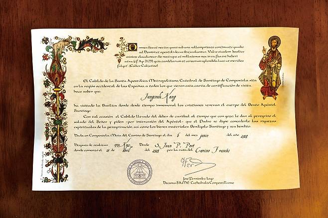 죽어도 좋다는 마음으로 갔는데 어떻게 포기하나요. 중간에 택시나 버스를 타고 코스를 뛰어넘는 이들도 있었지만 난 1m도 건너뛰지 않았습니다. 전 구간을 다 걷는 이들이 전체 순례자의 10% 정도밖에 안된다고 합니다. 난 한 발 한 발 모든 길을 직접 걷고 싶었습니다.