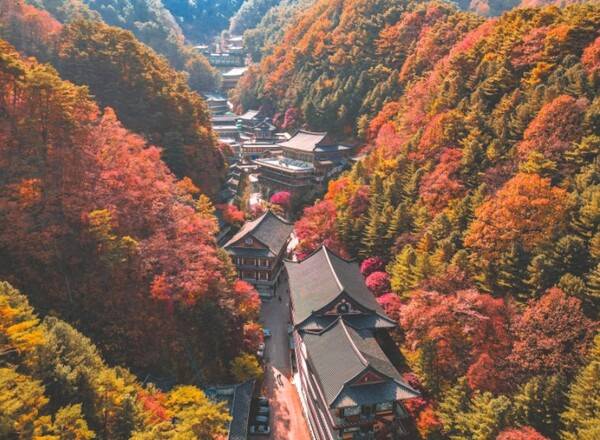 소백산 연화봉에 있는 구인사는 가을이면 단풍이 벽처럼 둘러싸여 장엄한 아름다움을 뽐내는 사찰입니다. 가파른 언덕과 좁은 길목을 따라 전각들이 줄지어 있는 구인사는 독특한 사찰을 구경하는 재미와 함께 단풍색과 같은 붉은 기둥들이 조화를 이뤄 이색적인 풍경을 자아냅니다.