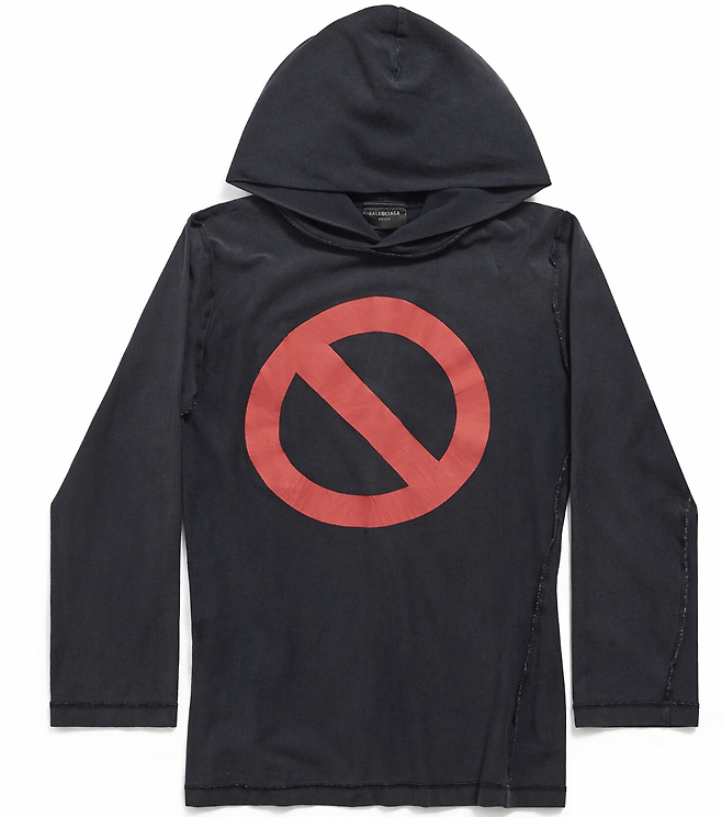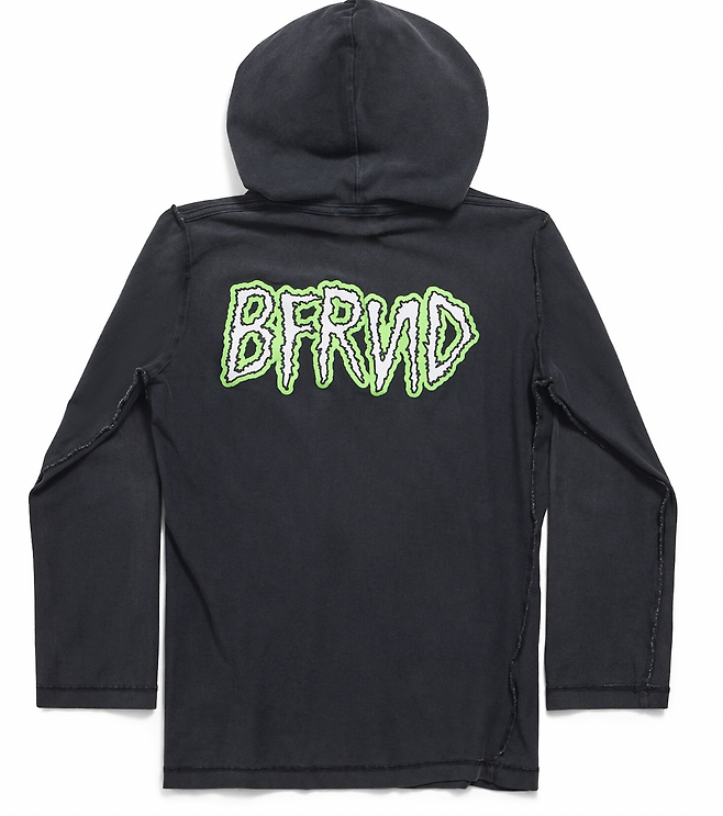 사진 속 후드 정보 - 발렌시아가 뮤직 | BFRND 시리즈 커넥티드 인사이드-아웃 롱 슬리브 후디드 티셔츠 페이드 블랙