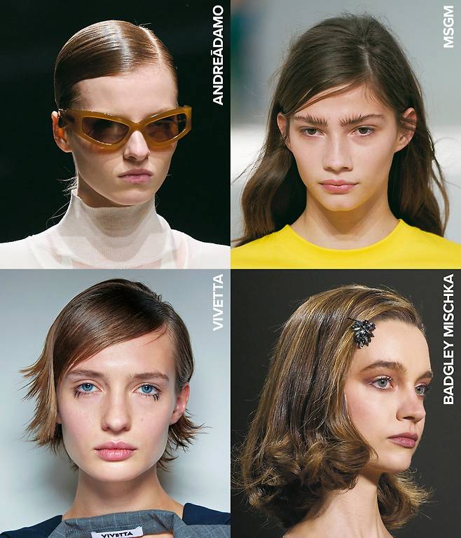 그 시절, 우리가 좋아했던 가르마가 돌아왔다. 촌스러움의 대명사였던 2:8 가르마가 백스테이지 곳곳에서 세련된 모습으로 포착된 것. 극단적인 비율의 머리카락을 한쪽으로 넘기는 일명 ‘깻잎머리’가 올드하다는 편견은 버리자. 구관이 명관, 튜닝의 끝은 순정이 아닌가? 게다가 대부분의 사람들은 얼굴 좌우가 다른 비대칭이라서 중간 가르마보다 깻잎머리를 하는 것이 윤곽의 단점을 가리기에도 좋다. 이번 트렌드를 따라 하는 방법은 무척 간단하다. 무엇보다 비용 하나 들지 않는다는 것이 마음에 쏙 든다. 그저 옆으로 넘기기만 하면 되니까! 넘기는 비율은 과감할수록 좋다. 귀엽게 살짝 뻗친 헤어에 슬릭하게 붙인 깻잎머리를 매치한 비베타나 거칠고 부스스하게 흐트러진 머리에 제대로 빗질해 결이 그대로 드러나는 가르마를 보여준 안테프리마는 극단 비율로 세련된 깻잎머리를 보여준 훌륭한 예시. 눈을 가리는 기장의 앞머리를 더해 어딘지 모르게 신비해 보이는 록의 헤어는 또 어떻고? 특별한 날 연출할 법한 헤어를 찾는다면 블로 드라이 스타일로 연출한 뒷머리에 바비 핀을 꽂은 깻잎머리로 그 시절 하이틴 바비의 모습을 보는 듯했던 아페쎄나 스트레이트 헤어에 깔끔한 가르마로 포인트를 준 발리를 참고할 것. MSGM 쇼의 모델처럼 잔머리를 바싹 세운 눈썹 결과 함께 연출하는 것도 세련되어 보일 것이다. 깻잎머리는 허리까지 내려오는 긴 매끈한 생머리부터 컬을 넣은 곱슬머리, 귀엽게 자리한 처피뱅에도 시도하는 그야말로 만능 치트키 헤어인 셈. 깻잎머리 초심자라면 가르마 비율보다 텍스처에 신경 쓰자. 이마 위에 웨트한 질감을 살린 앞머리를 가닥가닥 빗어 얹거나 큰 헤어핀을 꽂으면 고정력과 사랑스러움을 모두 잡을 수 있으니까. 귀여운 스타일에 질렸다면 벨라 하디드처럼 두상에 달라붙는 우아한 깻잎머리를 하거나 높게 올려 묶은 포니테일과 함께 관능적 스타일링으로 연출해보길. 어떤 모임에 가든 분명 당신이 주인공일 거다.