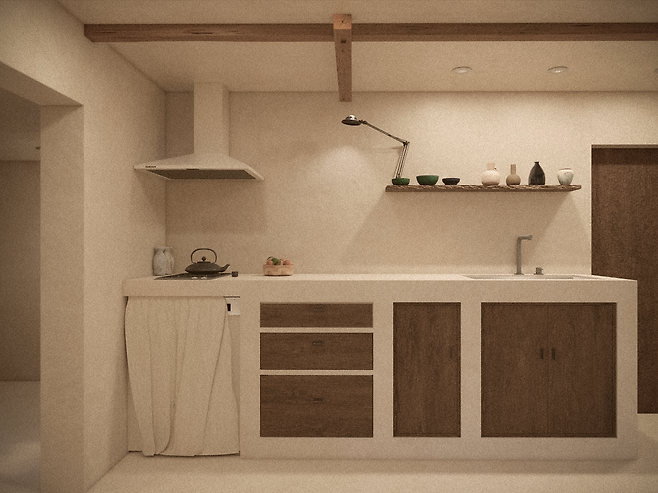 A. 공간을 기획하고 설계하는 것은 저와 두공공 스튜디오 동업자가 머리를 맞대고 진행했어요. 전기 배선이나 상하수도 배관 작업 같이 직접 할 수 없는 일은 일급의 기술자 분들을 고용해 진행했고요. 사전에 아무리 여러 번 소통해도 현장에서 결과물이 달라질 수 있기 때문에, 설계도면과 렌더링이미지를 바탕으로 명확하게 소통하려 노력했고, 작업이 진행되는 과정에는 항상 제가 상주했어요.