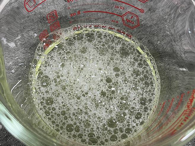 그릇에 물 종이컵으로 1컵, 주방세제는 2스푼 넣어 주세요.