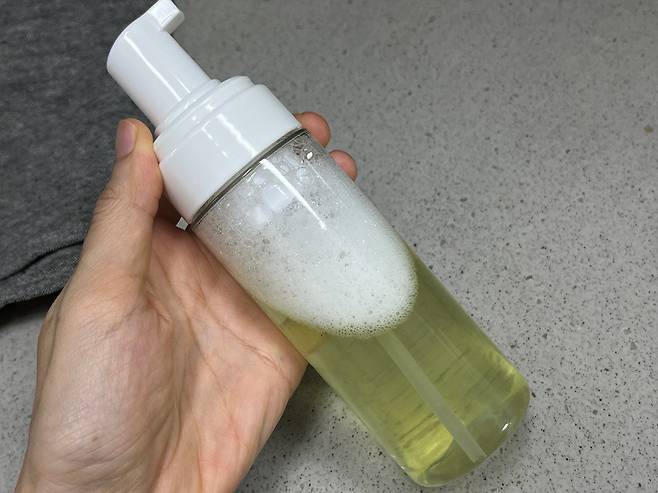 이렇게 만든 만능 세제는 펌핑 용기에 옮겨서 담으세요. 그래야 나중에 사용할 때 편합니다.