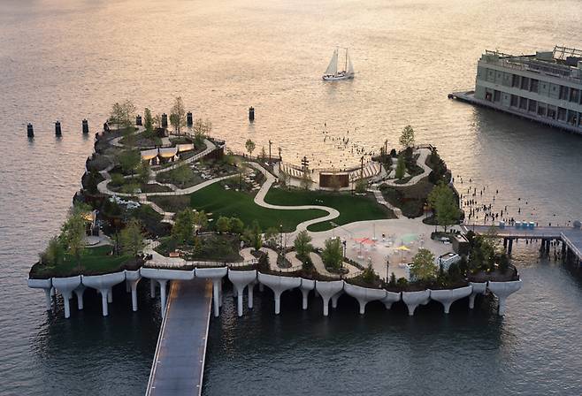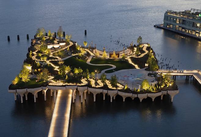 뉴욕의 여름이 다시 활기 넘친다. 코로나19 발생 이후 뉴욕에서 처음으로 개장한 무료 공원에 사람들이 모이며 다시 적극적인 야외 활동이 재개되고 있다. 지금 뉴요커들이 인증샷을 남기려 방문하는 무료 공원은 리틀 아일랜드(Little Island Park)다. 지난 5월 말 개장한 인공섬 리틀 아일랜드는 면적 1.1헥타르에 달하는 정사각형 모양의 섬으로 방문객들의 인기를 보면 그 동안 뉴욕에 왜 인공섬이 없었는지 의아할 지경이다.