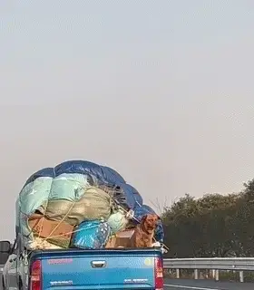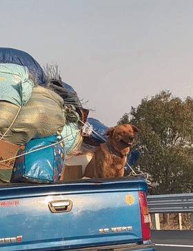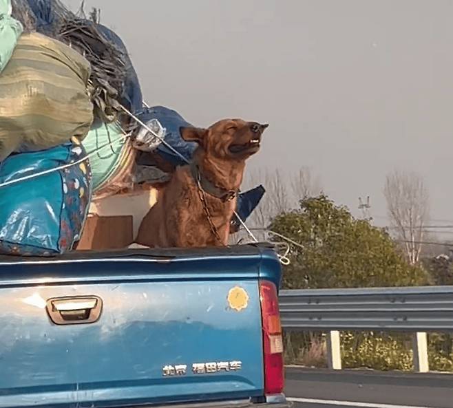 한 네티즌은 차를 타고 가다가 이사 가는 차에 타고 있는 강아지를 찍은 사진을 공유했습니다.