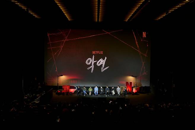 넷플릭스 시리즈 <악연>에서 외과의사 '주연' 역을 맡은 배우 신민아 및 출연진들은 오늘 제작발표회에 참석했다.