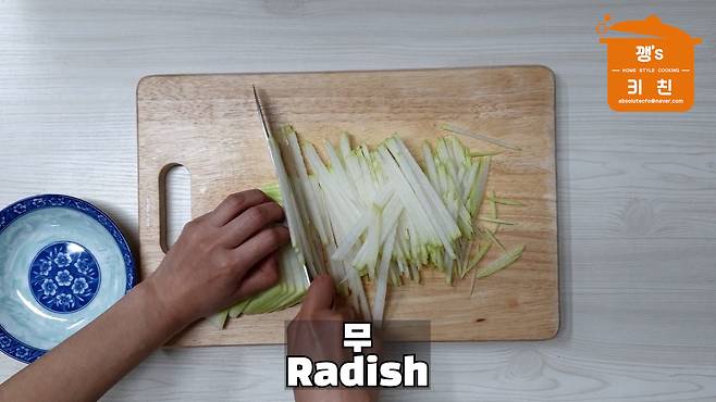 볼에 채 썬 무를 넣고