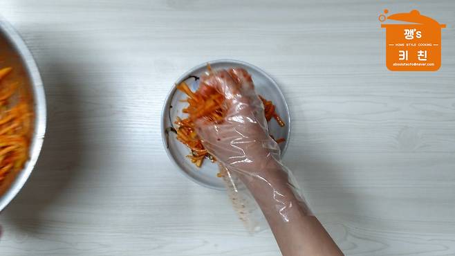 고춧가루 넣고 섞기