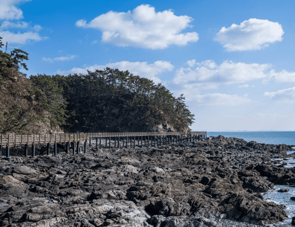 채석강 해안선을 따라 조용히 산책을 하다 보면, 눈앞에 펼쳐지는 푸른 바다와 다양한 암석이 시선을 사로잡는데요. 특히 해가 지는 시간대에 붉게 물드는 절벽과 잔잔한 바다가 만들어내는 풍경은 꼭 한 번 직접 봐야 할 장면입니다. 어린아이들도 안전하게 걸을 수 있는 완만한 지형도 이곳의 큰 장점입니다.