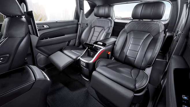 공차중량 2,600~2,700kg의 묵직한 체구 안에는 6인승 캡틴 시트와 에그제큐티브 시트가 배치되어 모든 탑승객에게 안락한 거주성을 보장합니다.