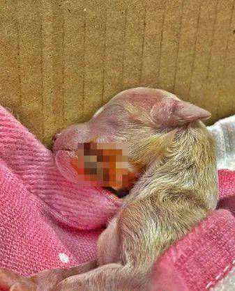 강아지가 막 태어났을 때, 몸이 작고 배꼽 줄이 배를 감싸고 있어서 엄마 개가 그를 물어 옮기려다가 힘 조절을 잘못해 실수로 그의 턱을 물어뜯었습니다. 이 부상은 강아지의 빨고 삼키는 능력에 영향을 미쳐 상황이 매우 좋지 않았습니다.