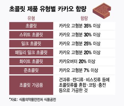이기원 교수(월드푸드테크협의회장)는 "우리나라에선 카카오 고형분이 7%만 넘어도 '초콜릿류'에 해당하지만, 이들 제품엔 카카오버터 대신 팜유를 쓰거나 카카오 함량이 너무 적어 전문가 사이에선 '가짜 초콜릿'으로 통한다"고 말했다.