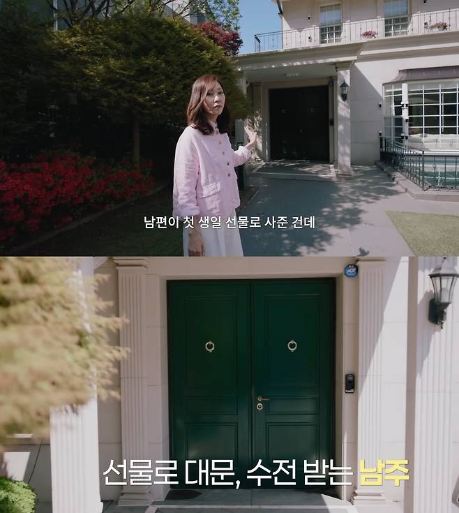 최근 자신의 유튜브 채널을 개설한 김남주는 대저택을 소개하며 "이탈리아에서 온 초록 대문은 남편에게 받은 첫 생일선물"이라고 밝혔는데요.