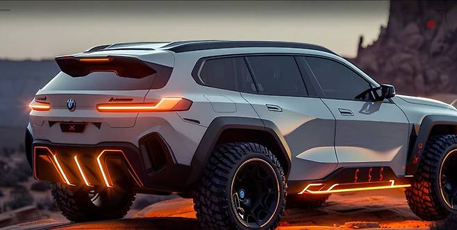 차세대 BMW X5 풀체인지 모델은 기존 X5가 지닌 안정적이고 강인한 비율을 계승하면서도, 디테일 하나하나에 BMW의 미래 디자인 철학을 과감하게 투영했습니다. 길게 뻗은 보닛 라인과 넓은 휠베이스, 그리고 넉넉한 리어 오버행은 그대로 유지하여 X5 고유의 웅장함을 잃지 않으면서도, 전면부와 후면부의 디자인은 완전히 새로운 시각적 경험을 제공합니다.