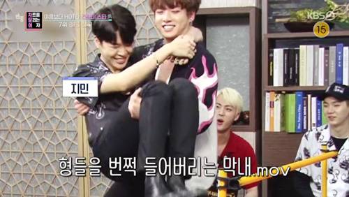 이에 황정민은 "모두가 인정하는 운동 센스로 아이돌들의 육상 대회에서 팀을 우승으로 이끌었던 정국. 그뿐 아니라 멤버들을 번쩍번쩍 들어 올리며 팀내 힘 서열 1위에 등극했다"고 밝혔다.
