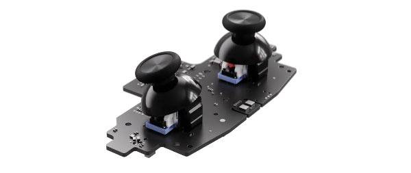아날로그 스틱은 TMR 방식 적용, 전정식 터치를 지원해 모션 컨트롤도 지원한다. 본체는 햅틱 피드백 지원을 위한 모터가 4개 탑재되었으며, 새롭게 정전식 터치로 자이로를 활성화하는 그립 센스 기능도 추가되어 모션 컨트롤 지원이 가능해졌다.