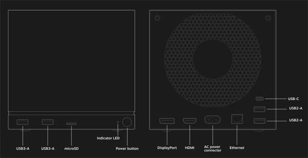 추가로 마이크로SD 카드로 저장 공간을 확대할 수 있으며, 제품 크기는 156mm x 162.4mm x 152mm, 무게는 2.6kg, OS는 스팀 덱에 쓰인 스팀OS 3이 제공되고, 전면 패널 교체를 통해 커스텀 디자인도 가능하다.