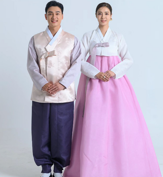 정인영은 비즈가 화려한 달린 벨라인 드레스를 입었고 윤석현은 베이지색 정장을 입었다.