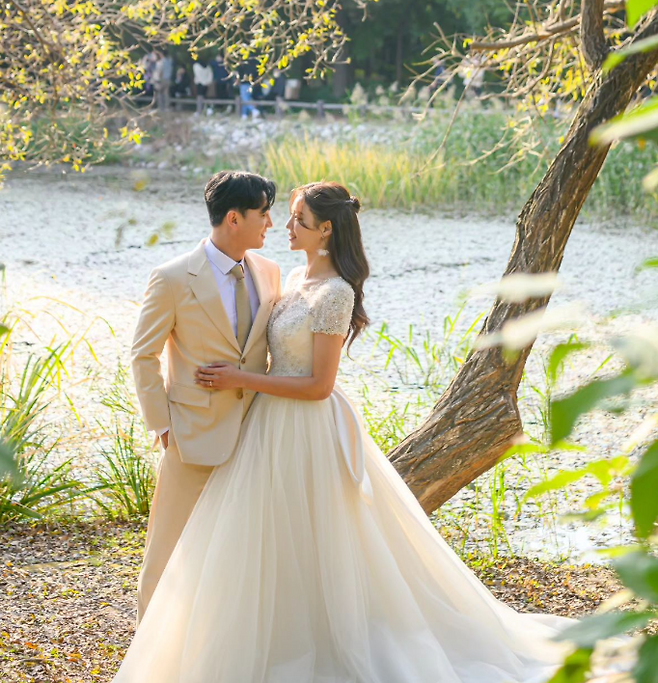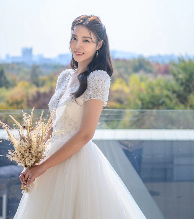 '갯마을 차차차'배우 윤석현(42)과 결혼한 아나운서 정인영(40)이 뒤늦게 웨딩화보를 공개했다.