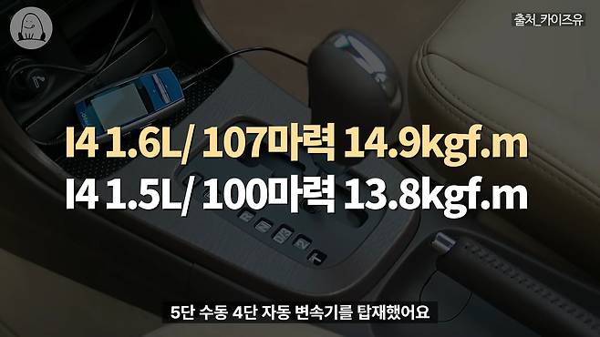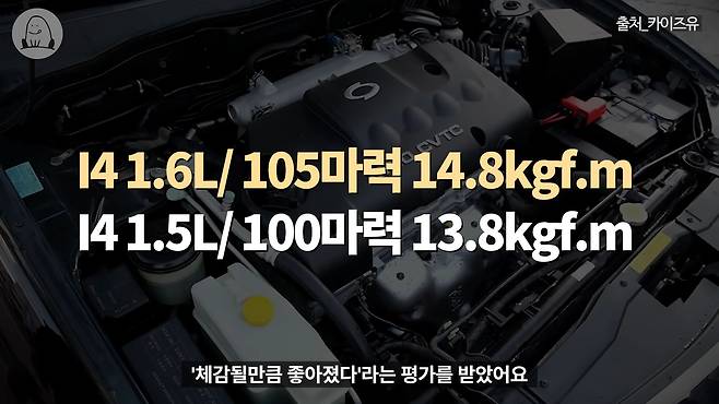 이후 출시 2년 후인 2004년에는 개선된 파워트레인을 추가하고 상품성을 보강한 마이너 체인지 모델을 선보였습니다. 오래전 현대 '엘란트라' 이후 자취를 감췄던 1.6L 엔진을 선보였는데, 기존 1,500CC 미만이었던 국내 소형차 배기량 규정이 이 무렵 1,600CC로 상향 조정되면서 이에 발빠르게 대응한 것이었죠. 수치상으로는 기존 1.5L 엔진 대비 '5마력', '1kgf.m'라는 아주 미미한 상승이었지만, 로직이 함께 개선되면서 체감될 만큼 좋아졌다는 평가를 받았어요. 뿐만 아니라 최신 'CVVT' 기술이 적용돼 배기량이 늘어났음에도 연료 효율은 오히려 높아진 것이 특징이었습니다.