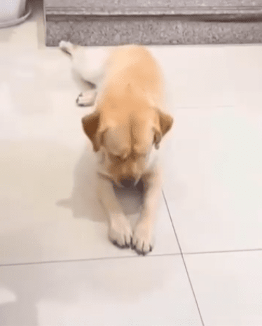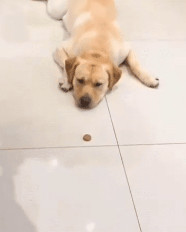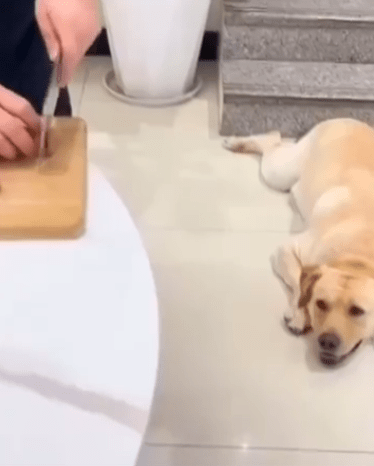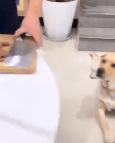 너무나 자연스럽고 능숙하게 벌어진 이 행동. 눈 깜짝할 사이, “여긴 아무것도 없어요”라는 듯 고개를 들고 아무 일도 없다는 표정으로 주인을 바라보죠. 주인이 이 광경을 못 봤을 리 없지만, 모른 척하며 자리를 비웁니다. 그리고 그 순간—강아지는 앞발로 가려두었던 고기를 후다닥 입에 넣습니다. 말 그대로 속전속결, 타이밍이 완벽합니다.