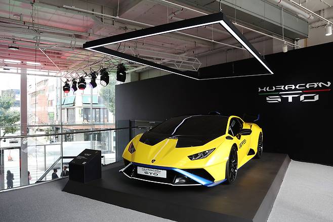 람보르기니 우라칸 STO현재 람보르기니 모델로 전시되는 차량으로는 우라칸 STO를 만날 수 있다. 우라칸 STO는 람보르기니 스쿼드라 코르세의 원메이크 레이스 시리즈와 우라칸 슈퍼 트로페오 EVO의 레이싱 헤리티지에서 영감을 받았다.