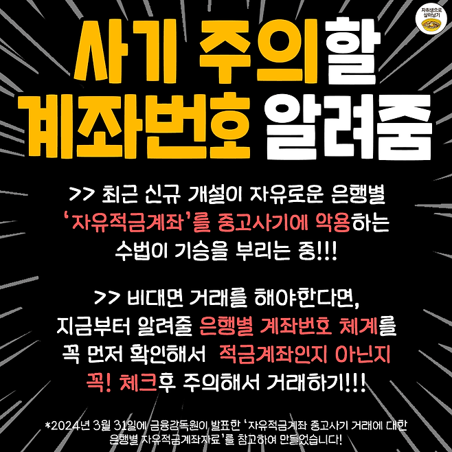 중고거래 시 사기 의심해봐야 할 계좌번호 종류