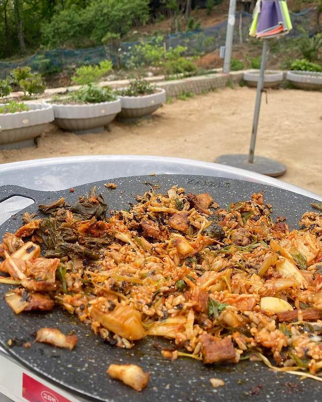 한적한 산속에서 즐기는 찐 레트로 감성 김해 ‘옥돌쉼터’. 넓은 야외에서 산을 바라보며 몸보신 음식을 즐길 수 있는 힐링 가득한 공간이다. 메뉴는 삼겹살과 백숙, 오리고기까지 다양한 메뉴가 준비되어 있어 취향에 맞게 골라 먹을 수 있다. 인기 메뉴는 푸른 산을 바라보며 구워 먹는 삼겹살. 푸짐한 밑반찬과 구워 먹기 좋은 김치, 마무리로 볶음밥까지 먹으면 낭만 가득한 힐링공간에서의 완벽한 한 끼 식사로 손색이 없다.