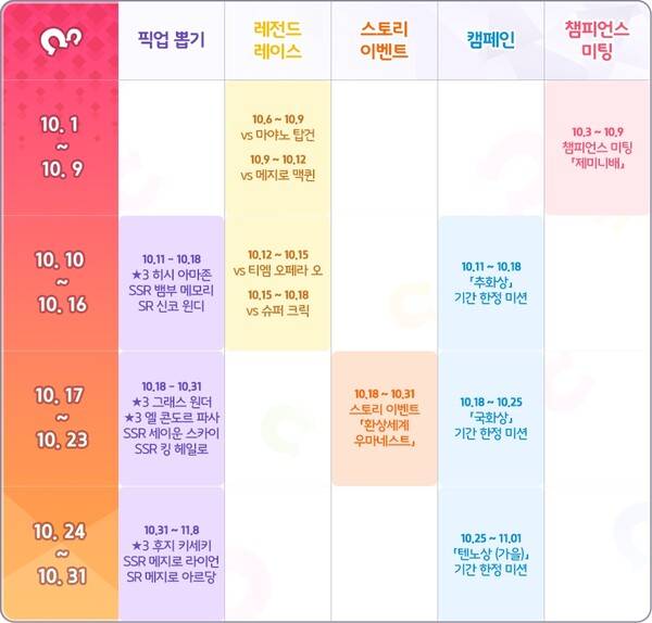 우마무스메는 11월 예정인 3성 '수영복 마르젠스키'와 12월 SSR 등급 '라이스 샤워', '카시모토 리코' 등 뛰어난 성능을 자랑하는 우마무스메와 서포트 카드 픽업 이벤트가 예정돼 있다. 이를 위해 쥬얼을 모으거나 과금을 대비하는 유저들이 많은 만큼 개선된 운영 태세를 유지하고 약속한 내용들을 이행한다면 다시금 국내 최고의 서브컬쳐 게임 자리를 차지할 가능성이 높다.