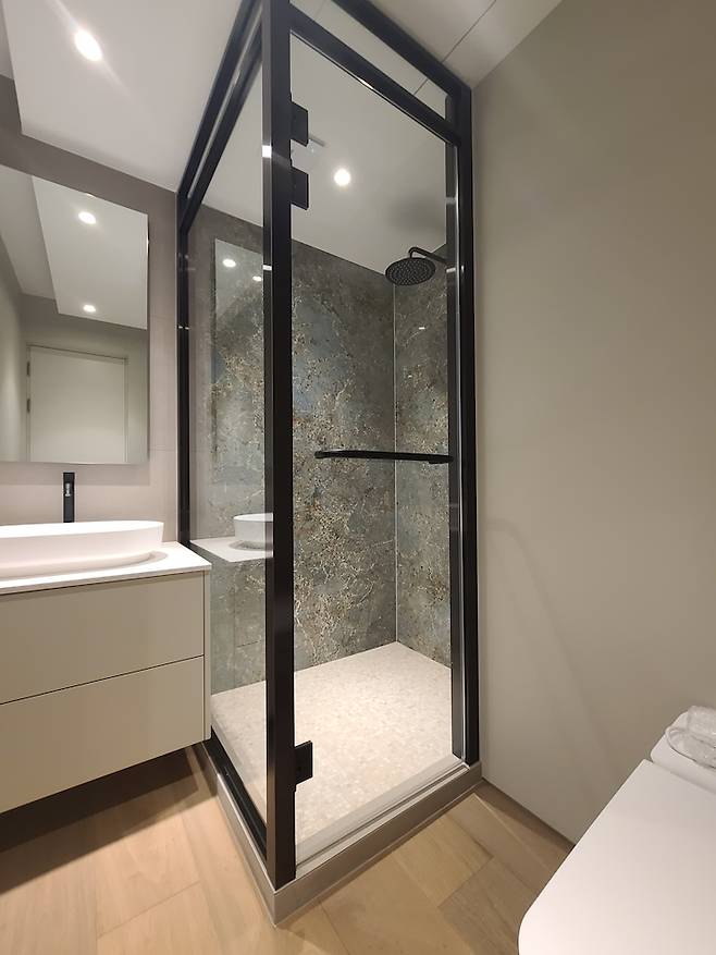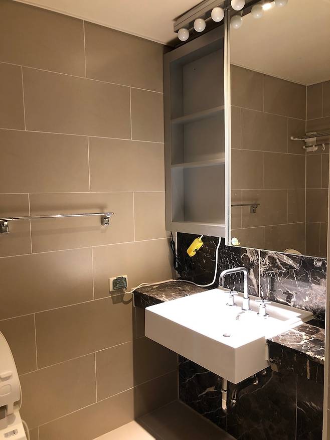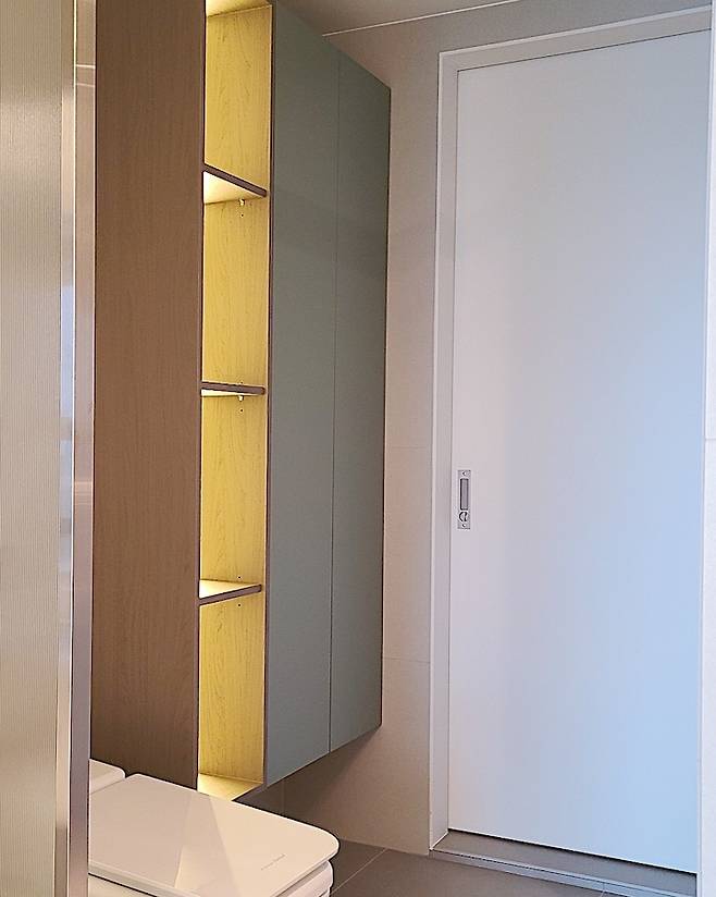 화장실을 전체 건식으로 시공하였는데 그 부분 또한 지금까지 너무나 만족하는 부분입니다. 위생적으로도 건식이 더 깔끔하다고 느껴지고 화장실에서 오래 머물러도 쾌적해서 좋아요.