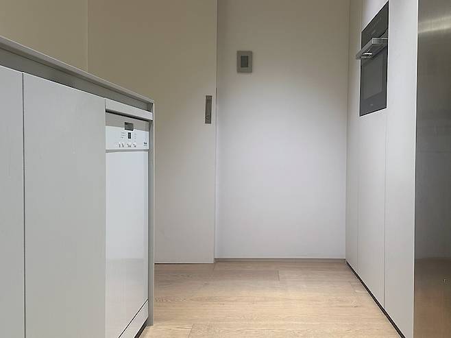 원래 전자레인지를 잘 사용하지 않던 터라 넣지 않으려고 하다가 인테리어 실장님이 아이가 생기면 필요하실 거라고 하셔서 콤비오븐을 넣었고 식세기 또한 고민하다가 주변에서 다들 있으면 좋다고 해서 빌트인으로 넣었습니다.