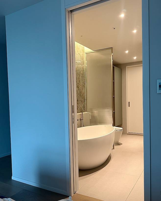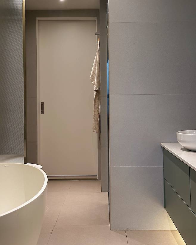 기존에 파우더룸과 붙박이장 있던 공간에 세면대와 프리 스탠딩 욕조를 설치하고 파우더룸과 욕실을 나누고 있던 문을 허물어 욕실의 사이즈를 전체적으로 키웠습니다.