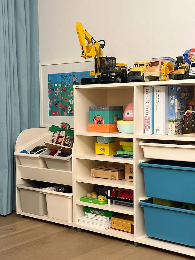 출산하자마자 집으로 들어왔고 아이를 처음 기르다 보니 초반에는 아이 위주로 거실을 쓰게 되어 어느새 아이의 물건들로 거실이 가득 차게 되었고 거실로서의 기능을 한다기 보다 넓은 아이의 놀이터가 되어가는 느낌이 들었어요.