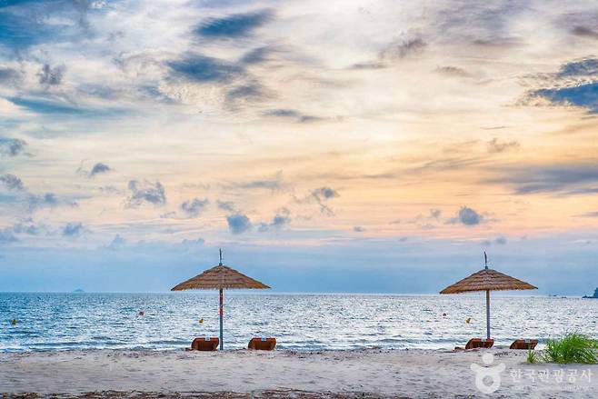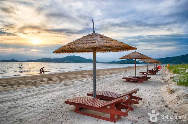 길이 4km, 폭 100m의 넓은 백사장을 따라 걷다 보면 수평선 너머로 떠 있는 크고 작은 섬들이 한 폭의 그림처럼 펼쳐지고, 바닷물은 깨끗하게 반짝이며 마음까지 맑아지는 기분을 줍니다.