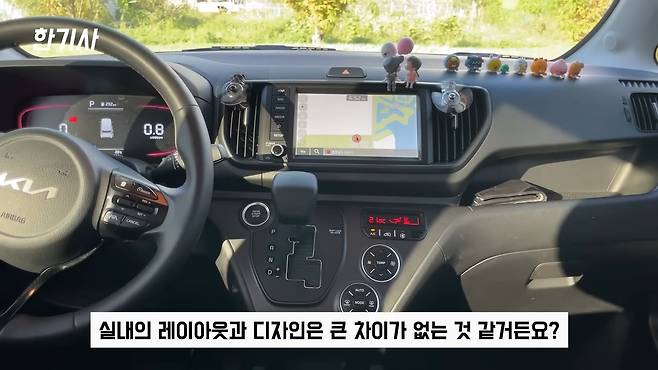 그리고 실내 디자인도 마음에 듭니다. 너무 이게 화려하지도 않고 촌스럽지도 않고 적당하게 깔끔하게 되어 있는 게 저는 마음에 들더라고요. 출시 초창기인 1세대 레이, 2차 페이스리프트까지 비교를 했을 때도 거의 비슷한 것 같아요. 특히 이제 계기판 같은 경우에도 디지털 계기판이 들어가니까 저는 이게 마음에 듭니다. 새로운 기아 로고가 박혀있는 3스포크 핸들 또한 조금 더 새로운 미를 더해줬고요. 8인치 내비게이션의 시인성도 아주 훌륭해요.