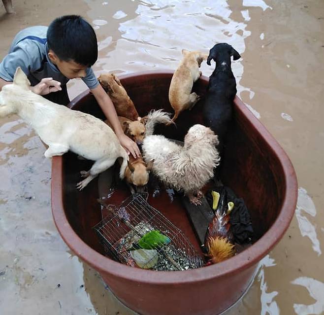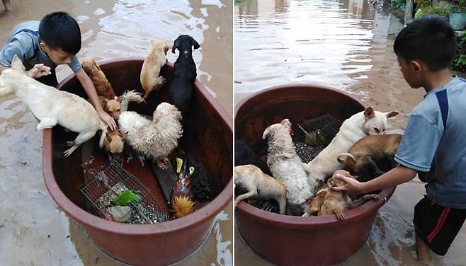 대야 안에는 겁에 질린 강아지들과 새장 속 앵무새까지, 작은 생명들이 가득합니다. 자신의 아픈 다리도 잊은 채 오직 동물들을 구하겠다는 일념으로 나선 10살 소년의 이야기가 지금까지 많은 사람들에게 감동을 선사하는데요.