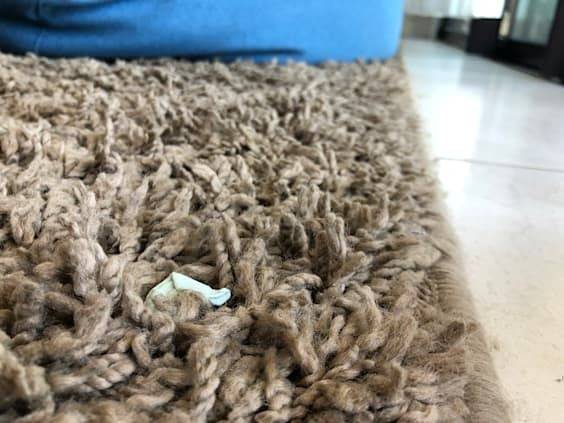3. 껌 위에 올리기: 카펫에 붙은 껌 위에 5-10초간 올려두세요