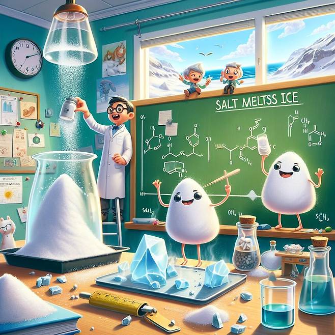 1. 얼음에 소금 뿌리기: 얼음에 소금을 골고루 뿌려주세요